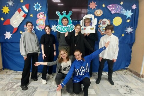 Накануне 12 апреля в Лицее оформили тематическую фотозону, посвящённую "Дню космонавтики".